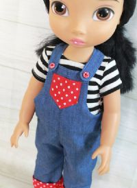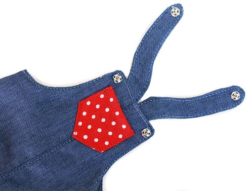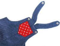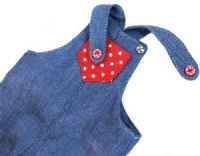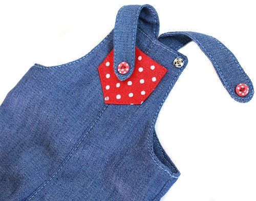 - Overalls - made from cotton and closes with snaps under the buttons.