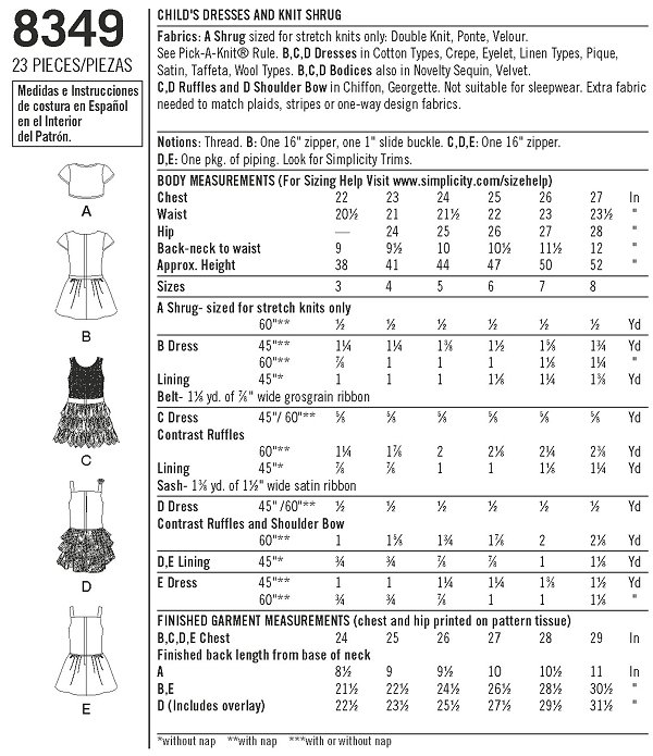 #178 Simplicity 8349 (Size US 3-8)