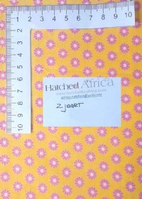 Pretty little pink daisy flowers on a yellow background.