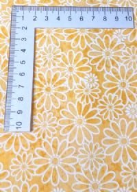 Yellow fabric with the most beautiful white daisy swirls.
