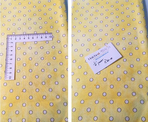 Shades of yellow with a white dot with a circle around each dot.1/2 Yard100% Quilters cotton---------------------------1/2 Yard = +/- 45cm