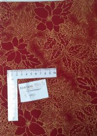 Christmas Holly and Poinsettias. Printed in gold on red fabric.1/2 Yard100% quilters Cotton-------------------------1/2 Yard = +/- 45cm