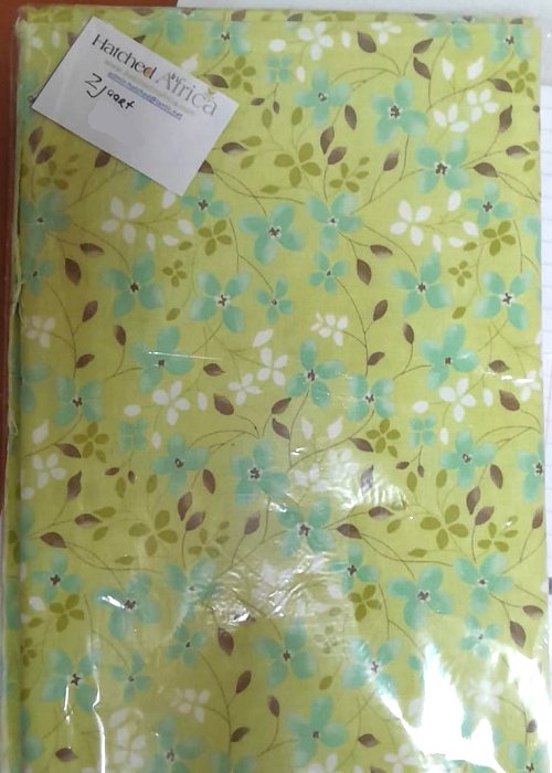 Mint green fabric with blue and white flowers2 Yards
