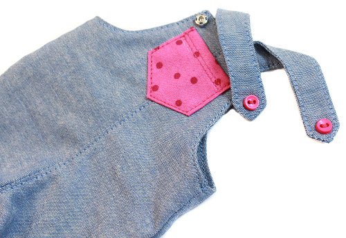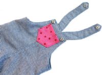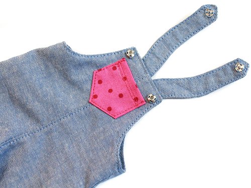 - Overalls - made from cotton and closes with snaps under the buttons.