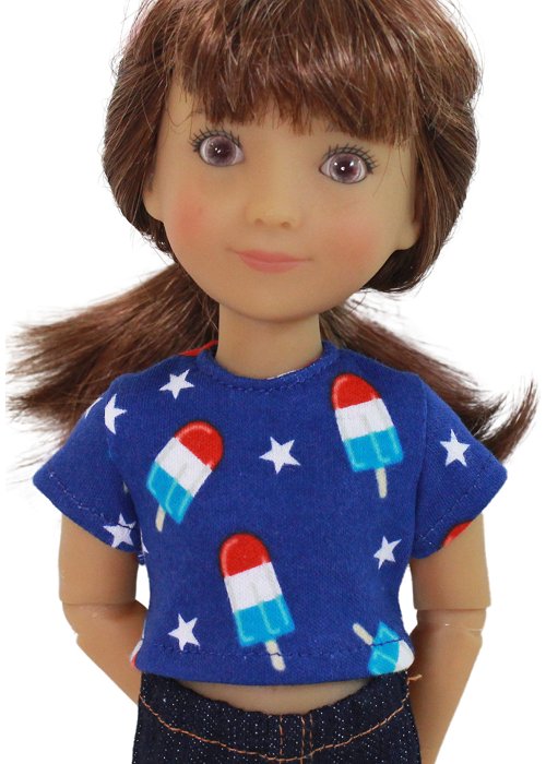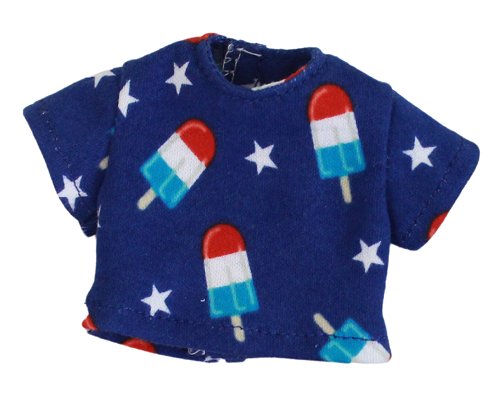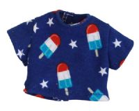 Crop top t-shirt made from a royal blue fabric with ice cream and stars. Closes with no-snag velcro in the back.