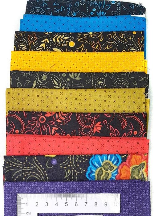 10x fabric pieces each the size of a Fat Quarter