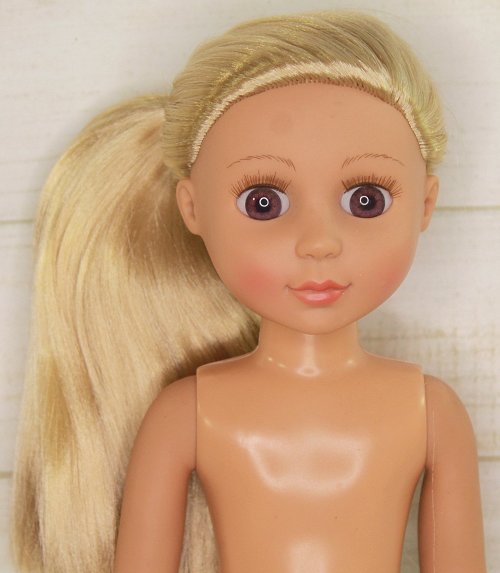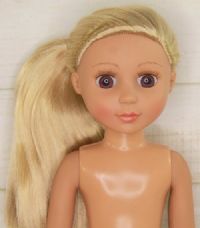 is in excellent condition and her clothes are still new. Her hair is still in it's original hair style.