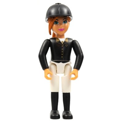 LEGO Minifigure - Belville - Horse RiderCharacter -Child Girl (Horse Rider) - White Shorts, Black Top with Buttons Pattern, Dark Orange Hair, Black Shoes, HatSeries - BellvilleCondition - Great condition. Paint unmarked.