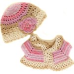 Jacket & Beanie - Beige and Pink - Pink Flower