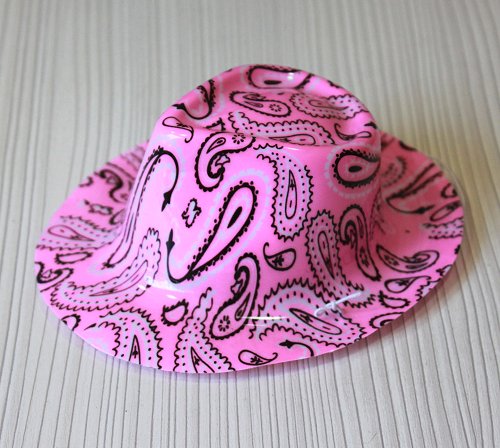 Plastic Cowgirl hat - Pink Paisley pattern.