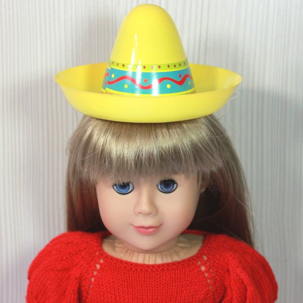 18 inch Dolls - The hat does not fit perfectly on the dolls head. It balances on the top and has an elastic to tie around the doll's chin. (dolls like SA Girl, American Girl, Our Generation)
