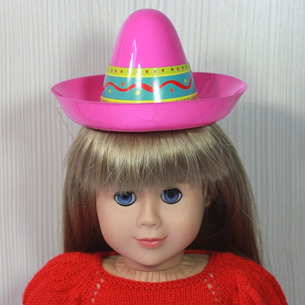 18 inch Dolls - The hat does not fit perfectly on the dolls head. It balances on the top and has an elastic to tie around the doll's chin. (dolls like SA Girl, American Girl, Our Generation)