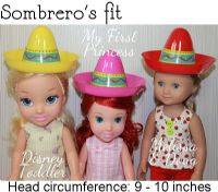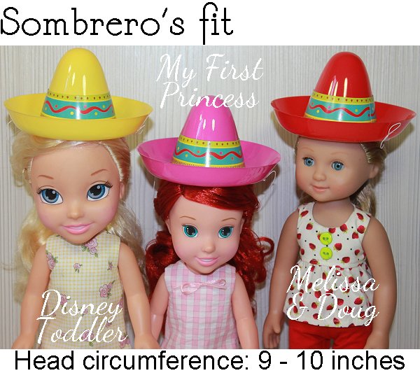 13 - 14 inch Dolls - This hat works perfectly for dolls with a head of 9 - 10 inches around the top. (dolls like Hearts for Hearts, Disney Toddler, My First Princess, Corolle les Cheries, Melissa & Doug)