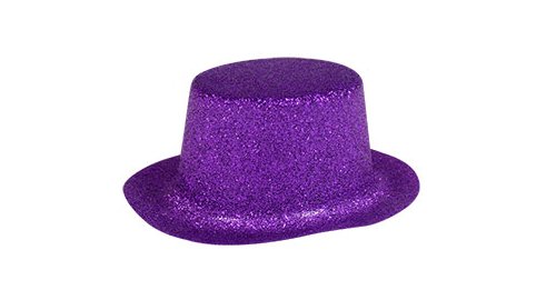 Plastic party hats in the shape of a top hat. It is made from glitter purple plastic!