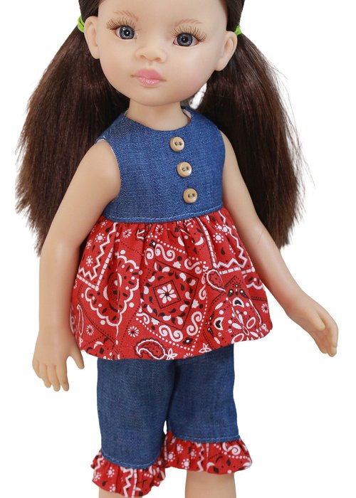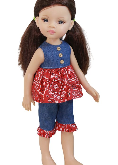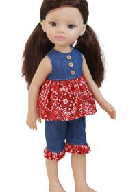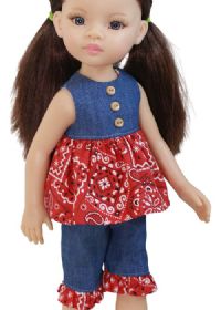 Sweet Play set for smaller dolls. The top closes with velcro in the back. The pants have an elastic waist for easy dressing.