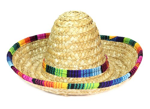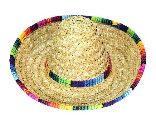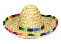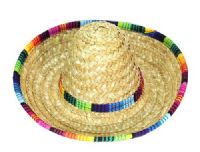 Straw sombrero in it's natural straw colour. The sombrero is finished with nice bright trim for authentic Mexican flair.
