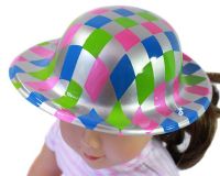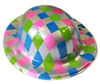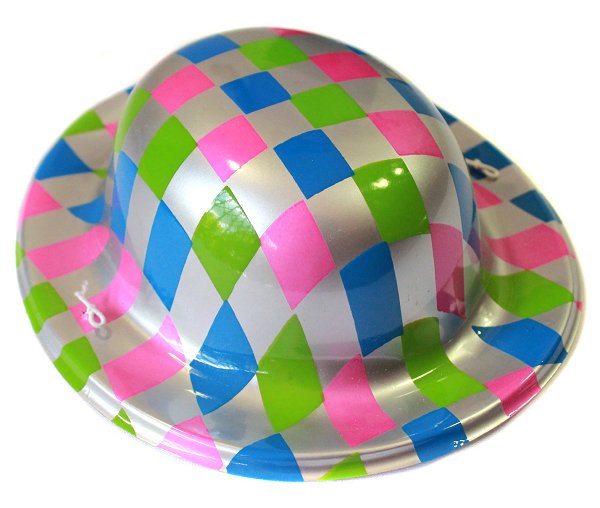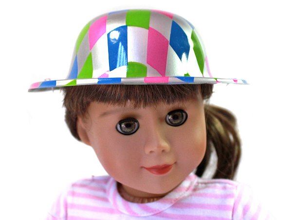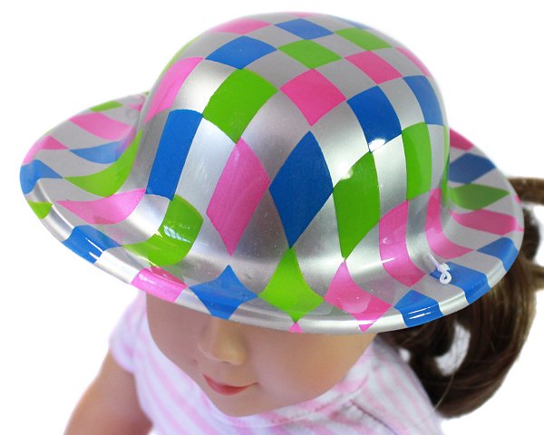 Plastic party hat - Silver Harlequin pattern.Fits 18 inch dolls