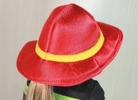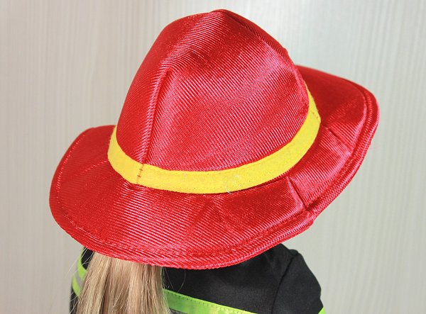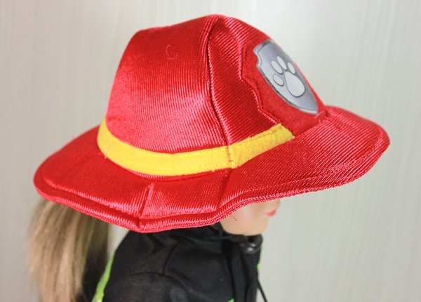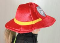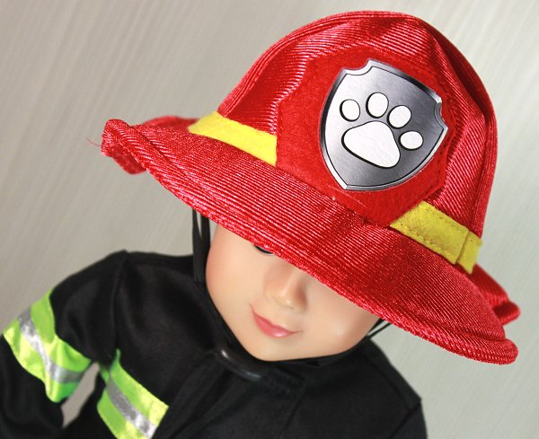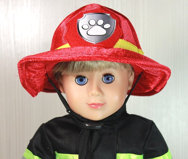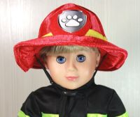 Firefighter helmet for your doll! This is a nice and soft helmet with a chin strap that goes underneath the doll's chin.