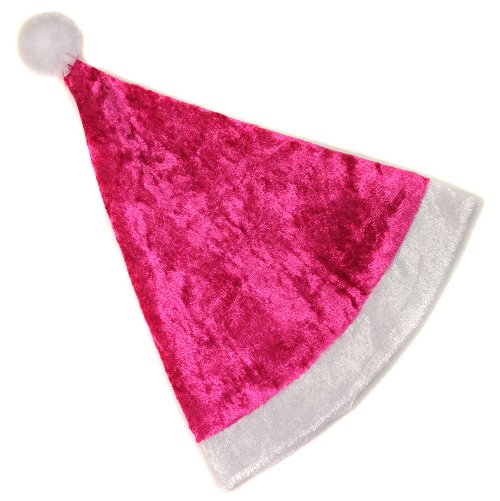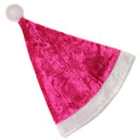 Fun hot pink Santa hat made from crushed velvet with a white velvet edge.