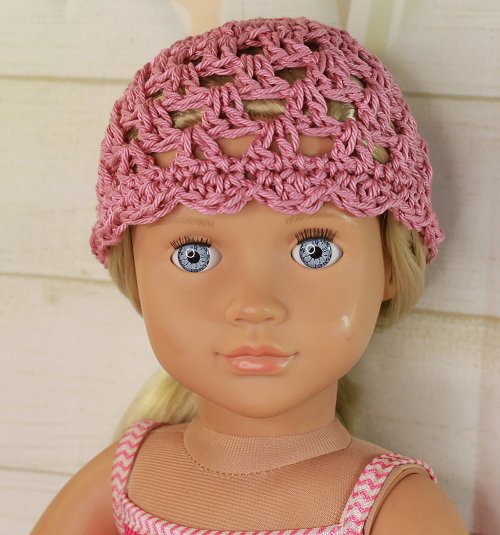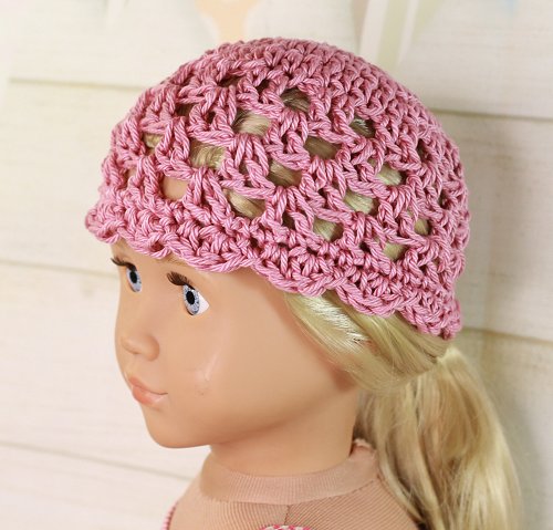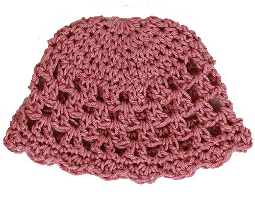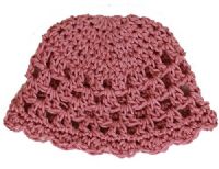 Lacey crochet skull cap style hat made from 100% cotton yarn.