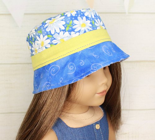 #4905 Reversible Bucket Hat - Daisies & Blue Check