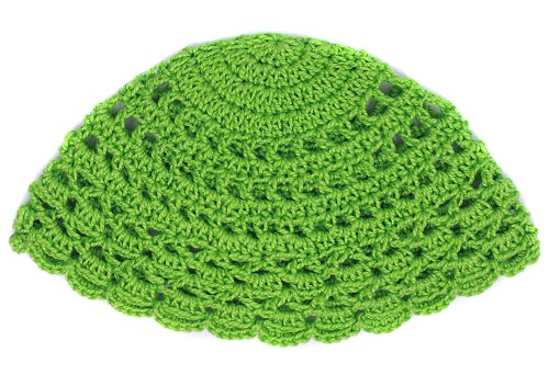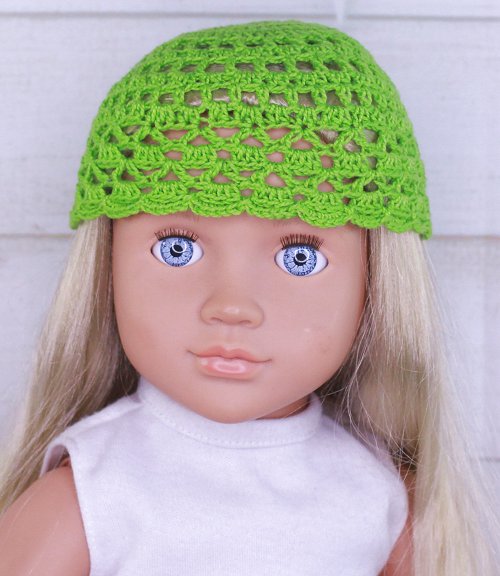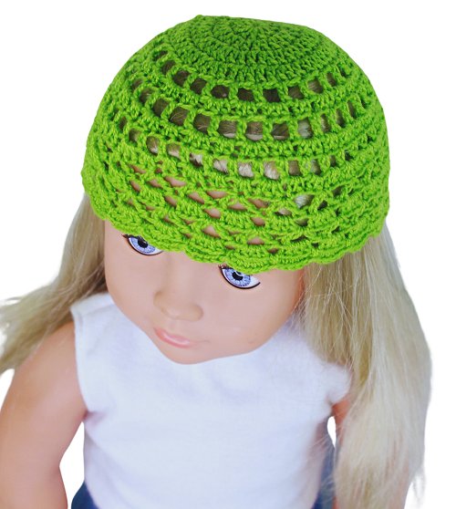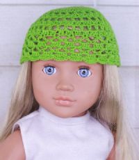 Lacey crochet skull cap style hat in colour. Made from quality mercerized cotton for lasting play.