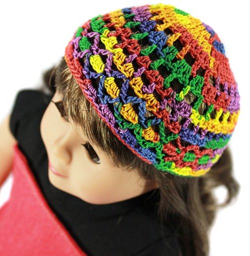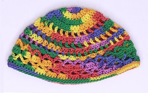 Lacey crochet skull cap style hat in colour. Made from quality mercerized cotton for lasting play.