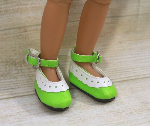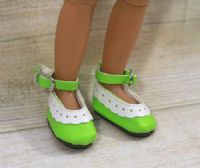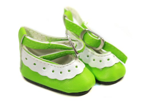 4.5cm Green lacey look shoes with ankle straps.PLEASE NOTE: These shoes DO NOT fit the 14 to 18 inch Dolls!Fits Foot Size - 2cm x 4.5cm