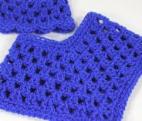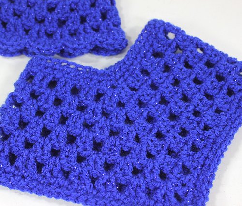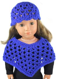 Fun and Trendy crochet poncho with sparkle thread and a matching beanie. The matching beanie is a skull cap lacy style beanie.Fits 18 inch dolls and slim dolls.