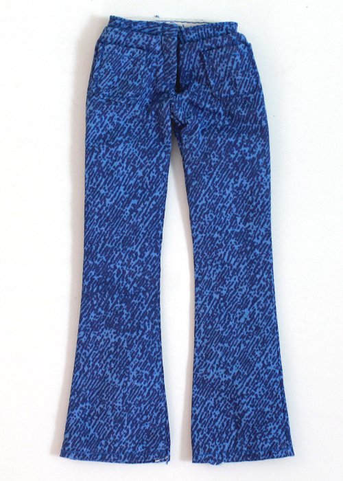 Blue pants with two working pockets in the front and two in the back. Closes with velcro at the back of the waist.