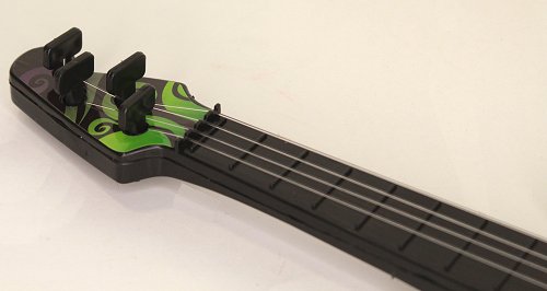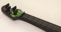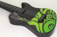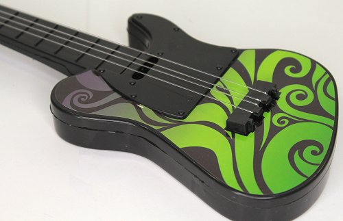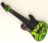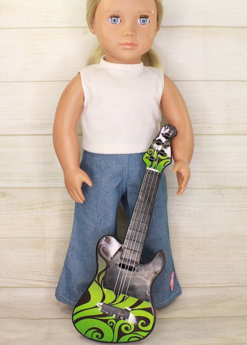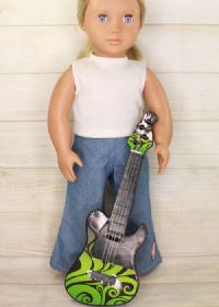 Plastic guitar with electric style and green on the front.The guitar is suitable for 14 to 18 inch dolls.