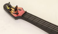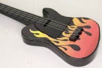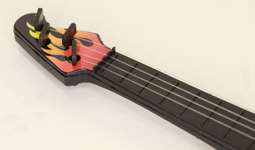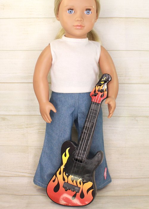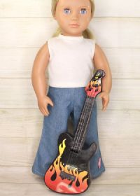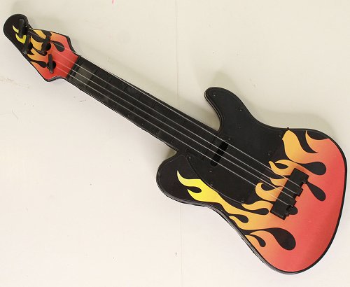 Plastic guitar with electric style and orange on the front.The guitar is suitable for 14 to 18 inch dolls.