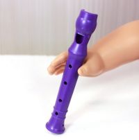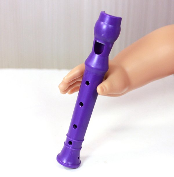The recorder is made of plastic and can really whistle if you blow into it. I use a small rubber elastic to keep the recorder in the doll's hand.