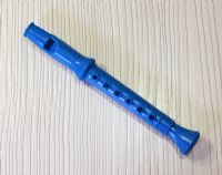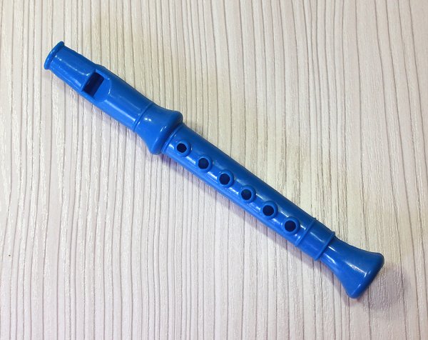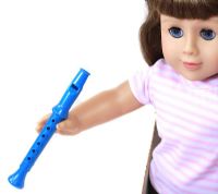 The flute is made of plastic and can really whistle if you blow into it. I use a small rubber elastic to keep the recorder in the doll's hand.