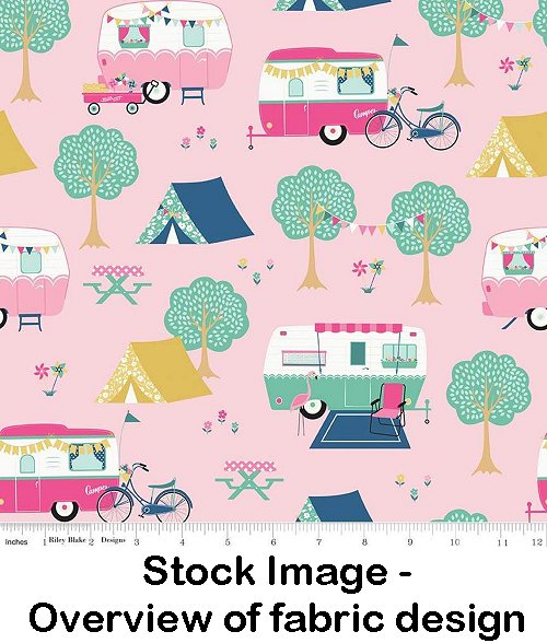 Campers and Tents on Pink: I'd rather be glamping by Deni Magstad for Riley Blake.