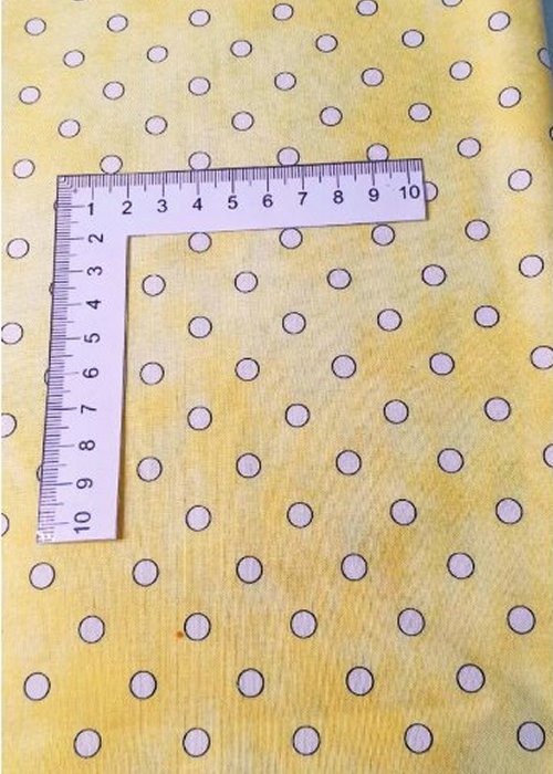 Shades of yellow with a white dot with a circle around each dot.1/2 Yard100% Quilters cotton---------------------------1/2 Yard = +/- 45cm