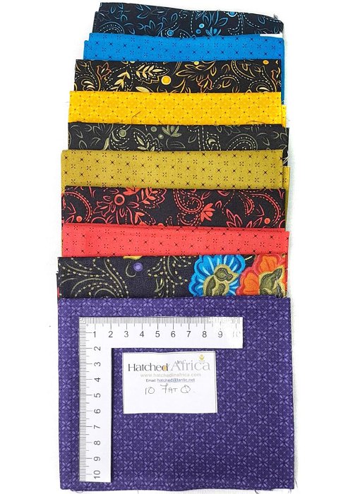 10x fabric pieces each the size of a Fat Quarter