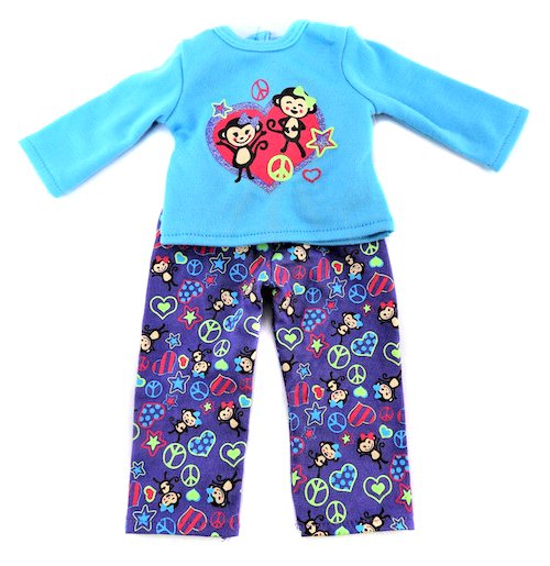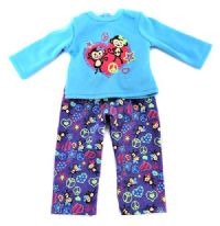 Cute and fun monkey pajamas!The long sleeve tee closes with Velcro in the back. The pants have an elastic waist.