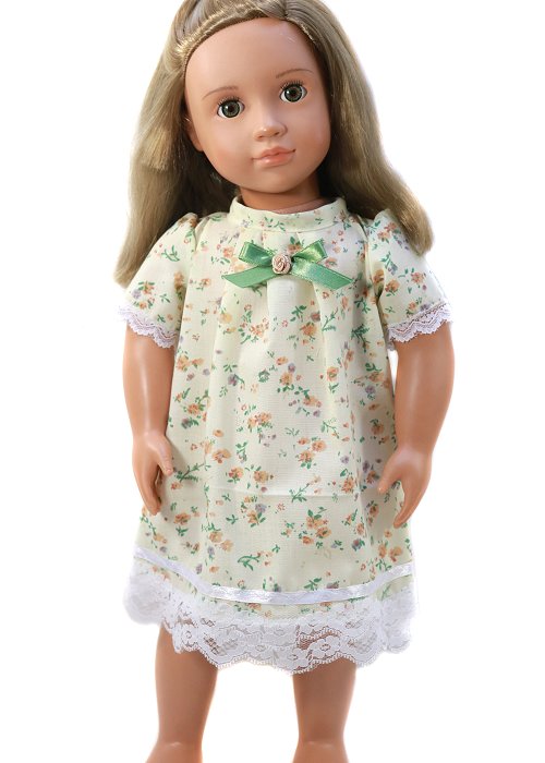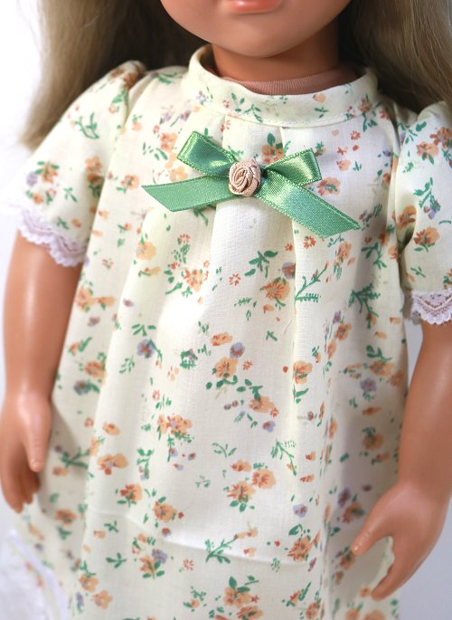 Sweet nighties in cream with sweet flowers and a green ribbon bow.