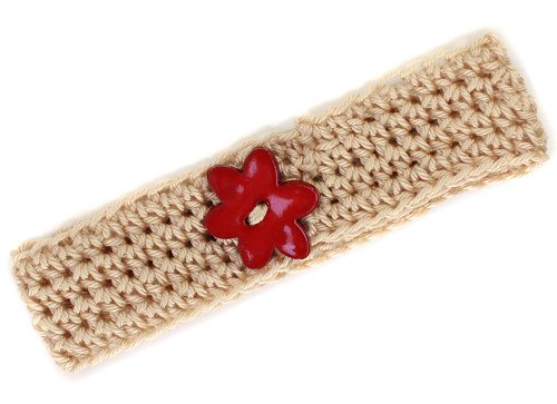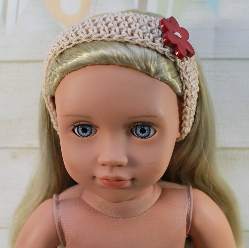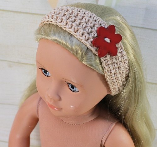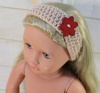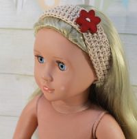 Cotton headband in beige with a wine red flower shaped button.Fits 18 inch dolls such as Our Generation, American Girl, SA Girl and more.Hand Crochet made in South Africa