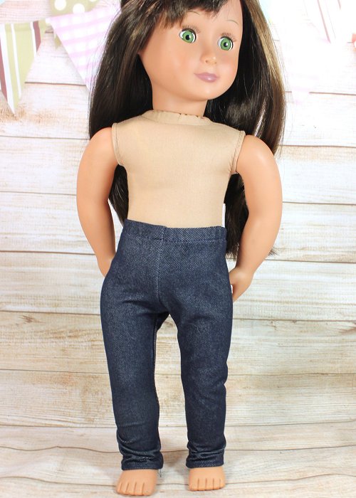 Lovely quality, very dark blue denim look knit leggings for your 18 inch doll. They are long length and a must have for your doll closet.