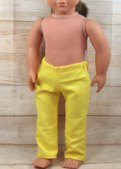 Realistic looking skinny denim pants for your doll! These pants have an elastic waist for easy dressing.