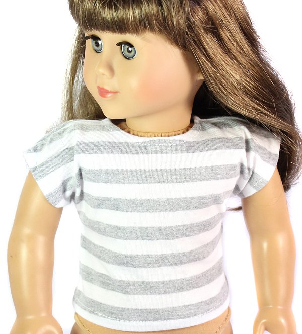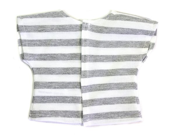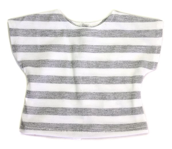 Grey and white striped is a great for boy or girl dolls! Made from a quality knit fabric and closes with Velcro in the back.
