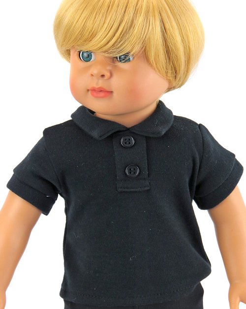 Black Polo / Golf style t-shirt for boy and girl dolls!