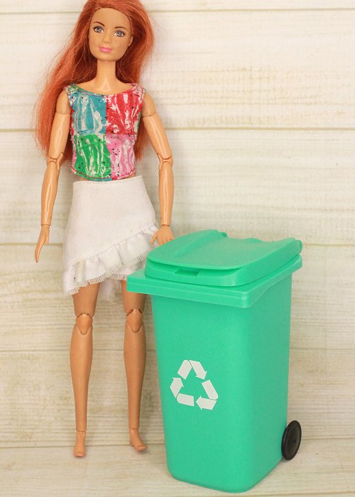 #1763 SECOND HAND - Green Recycle Bin - Barbie & 14 inch