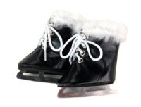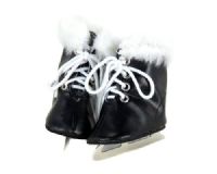 Vinyl Ice Skates with white shoe laces and silver blades. It is finished with a fur trim around the top edge. Closes with white laces. * Fits 18 inch dolls such as Our Generation, American Girl and SA GirlMade in China
