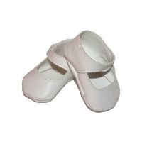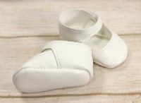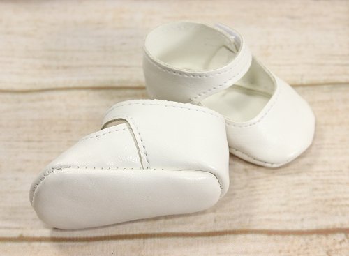 Mary jane shoes in white with a soft sole. Velcro closures.