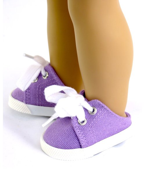 Canvas tekkies with an open back so they are very easy to slip on and off. They sit very well on the dolls foot.