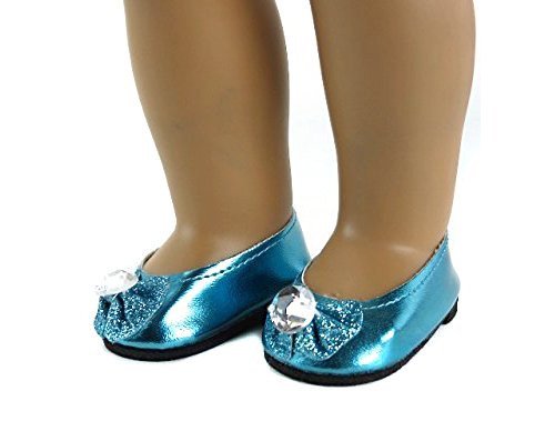 Metallic ballet flats with glitter bow and diamond gem detail.