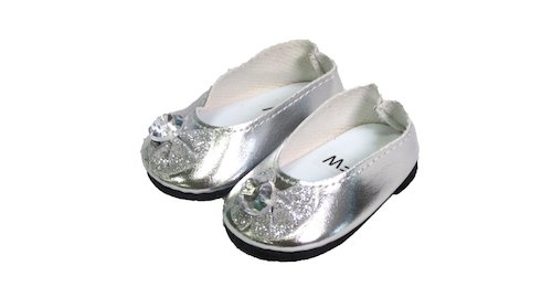 Metallic ballet flats with glitter bow and diamond gem detail.